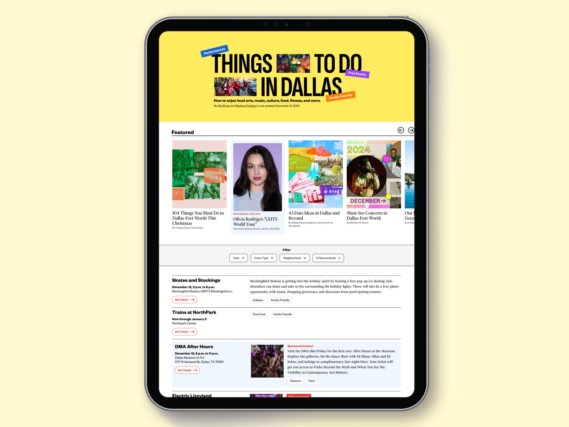 Looking to boost awareness for your next event— fast? We have the perfect solution. Feature your event in our Things to Do in Dallas guide, one of the most popular pages on our site. By promoting your event through our page, you'll gain instant exposure through top-tier SEO, placing your event front and center for an engaged audience actively seeking their next plans.